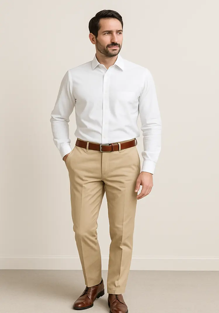 Beige pants propose versatility and pair attractively with printed formal shirts or even semi-casual shirts. For corporate casual or easy feasts, this is a smart choice.