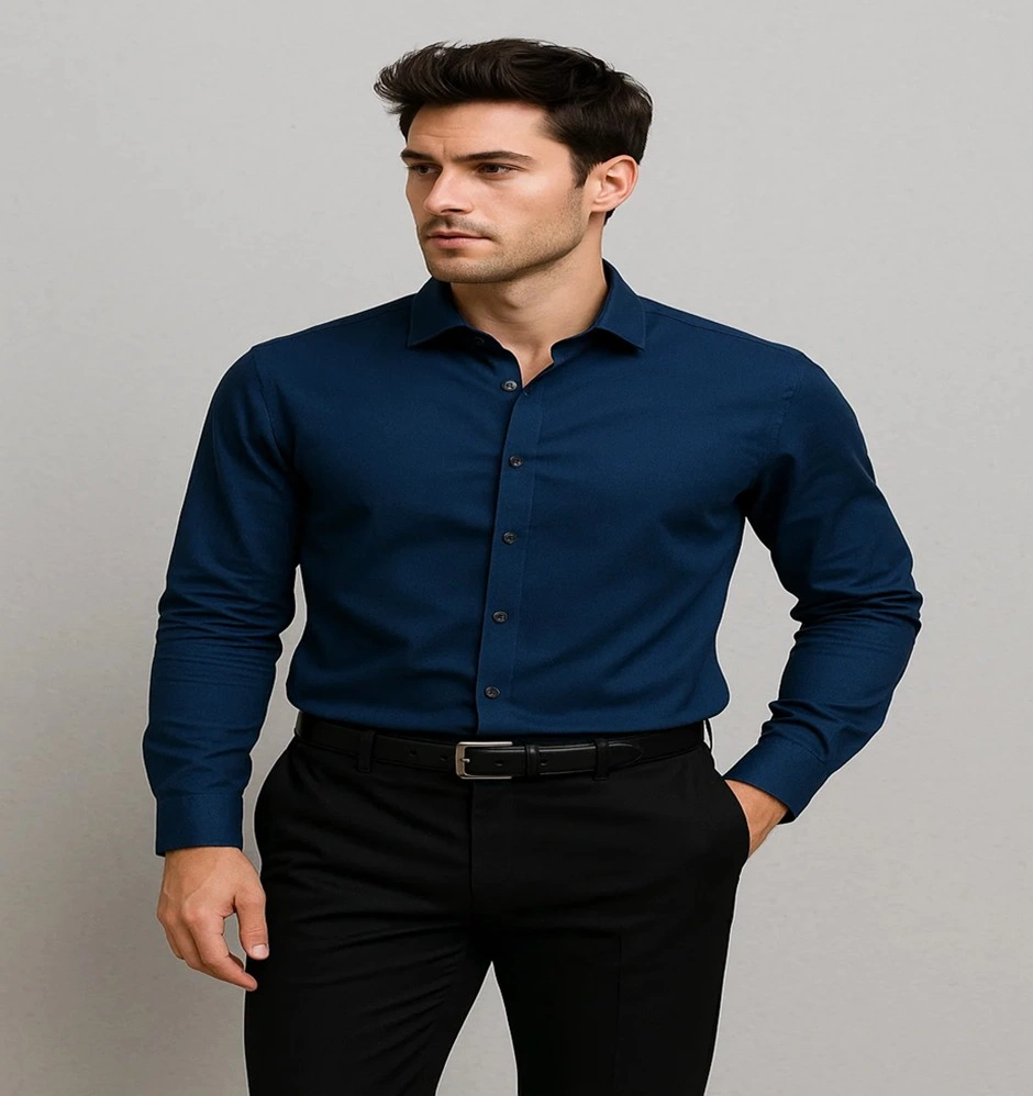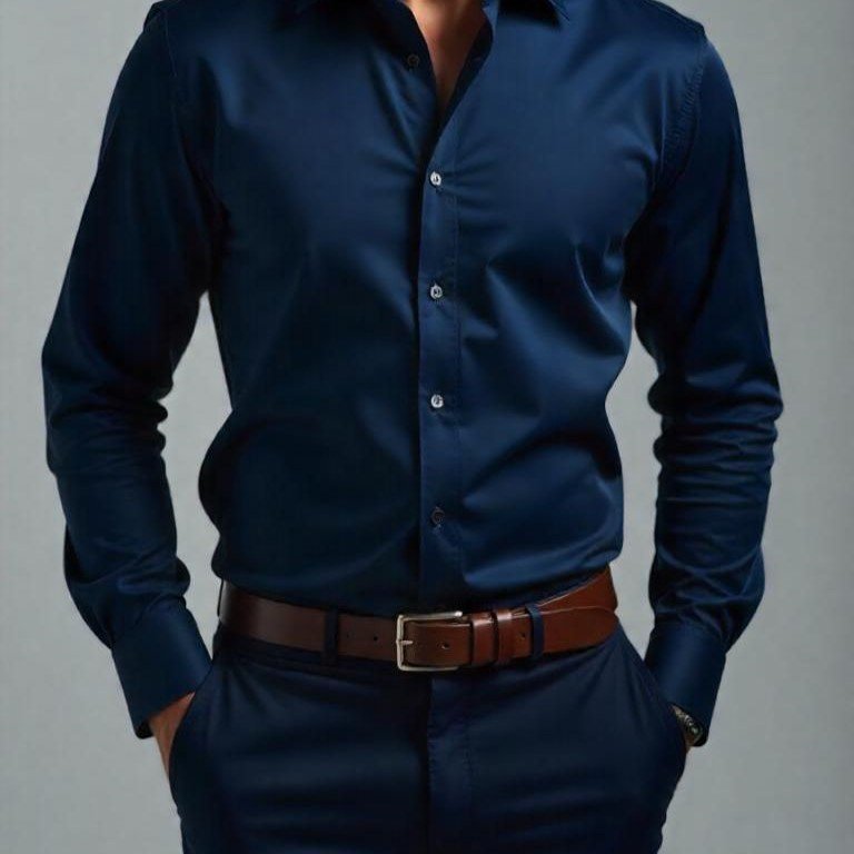 What truly makes the dark blue shirt stand out is its flexibility across different occasions and its capability to complement a wide range of accessories, patterns, and pant styles. Whether dressing for corporate conferences, dinner dates, or outdoor events, this shirt remains a wardrobe essential. By experimenting with textures, shades, and accessories, men could develop endless stylish combinations that reflect self-confidence and style.