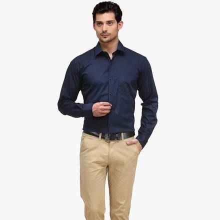Yes, a dark blue formal shirt combination works seamlessly with black, grey, or navy trousers. For business conferences or corporate get-togethers, stick to tailored fits, a black belt, and polished leather dress shoes. This generates a professional, dapper, and refined appearance.